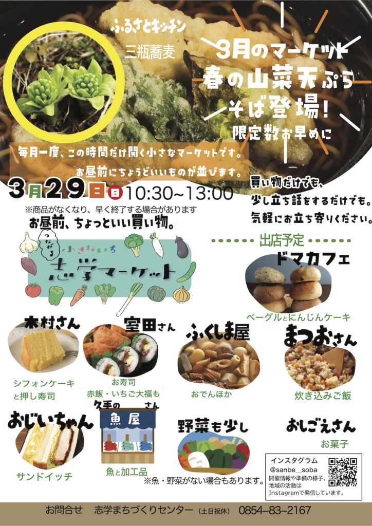今週末は三瓶へ|蕎麦打ち体験&志学マーケット開催(春休みにおすすめ)