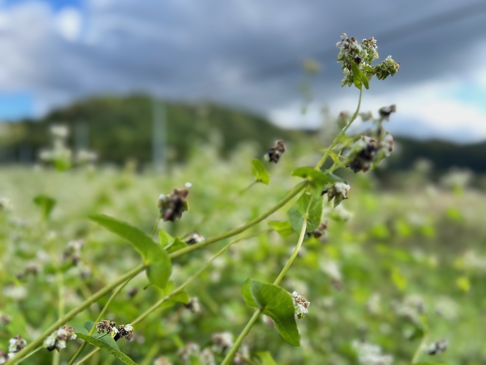 例年ですとこの収穫前に台風などでバタバタ倒れてダメになることがあるのですが今年は本当にそばにとっては良い気候となっているようです。蕎麦は根が短く簡単に倒れたり茎も弱くすぐに折れてしまします。そばの育成は難しいのです。まして、三瓶そばは原種に近い在来種。在来種を守るのはさらに大変なのです。蕎麦は近くで他の品種があるとすぐに交配が進んでしまうため守るためには他の品種は育てないようにしなければなりません。ということで三瓶周辺では生産組合を作り他の品種を作らないように各地域で大変な苦労をして品種を守る活動を行われてきました。このような苦労がGI認証を取ることができたのです。すごいですね!